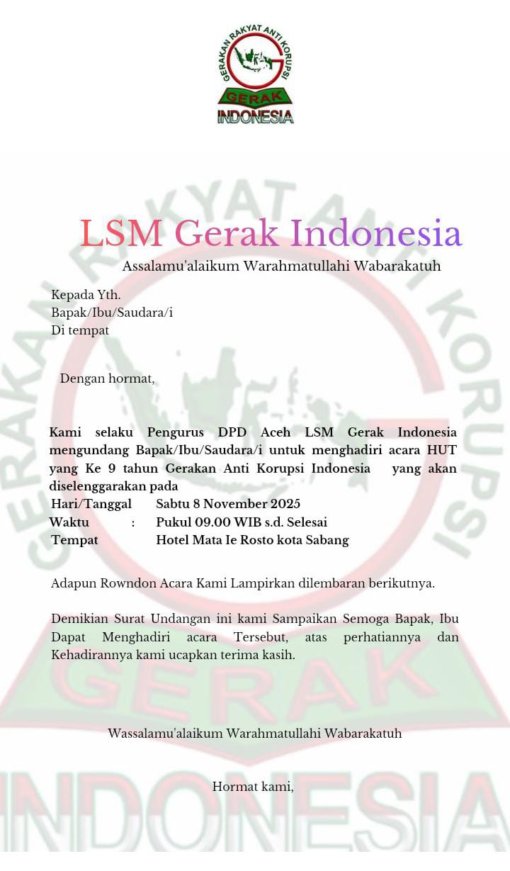 “Jaringan GeRAK Indonesia salah satunya adalah GeRAK Aceh,” kata Akhiruddin, Jumat, 7 November 2025.